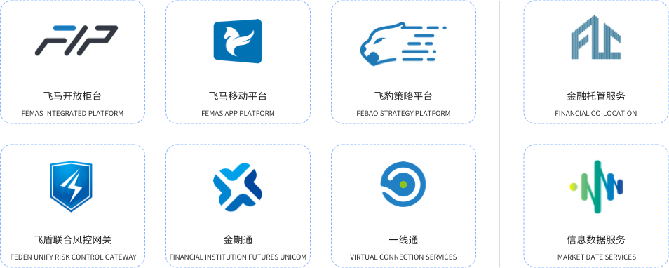 以便利機(jī)構(gòu)客戶參與金融期貨市場、助力金融期貨市場發(fā)揮風(fēng)險(xiǎn)管理功能為目標(biāo),具體包括:飛豹做市商平臺(tái)、飛馬證券版、飛盾風(fēng)控網(wǎng)關(guān)等。